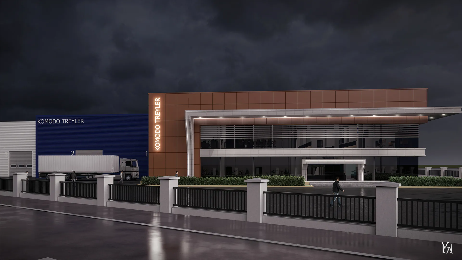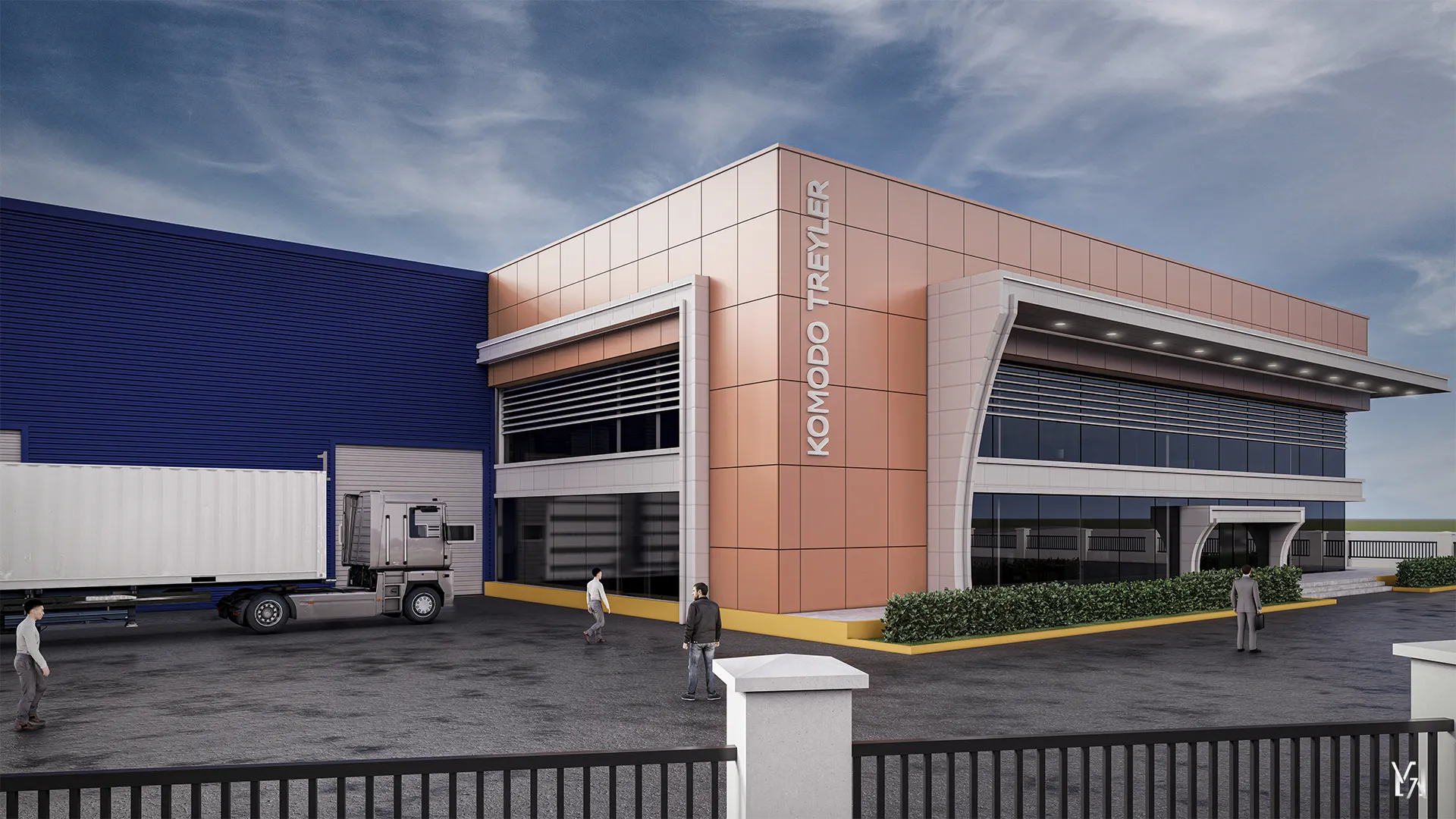 toplamda 13.000 m²'lik bir alanı kapsayan Komodo Treyler Fabrikası, modern