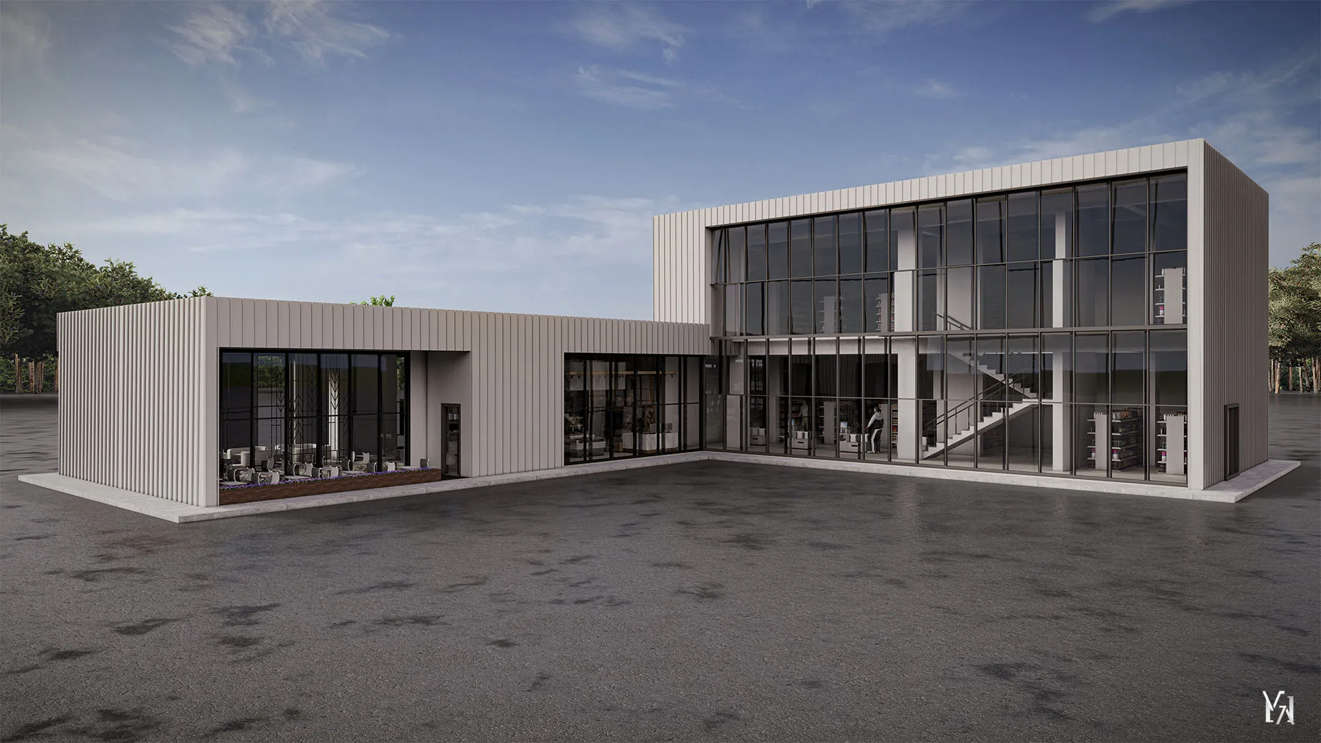 Proje, modern bir mimari yaklaşımla işlevselliği estetikle buluşturmaktadır. İki katlı yapının tasarımında, doğal ışık kullanımı ön planda tutulmuş, geniş cam cepheler ile ferah bir iç mekân yaratılmıştır. Minimalist cephe kaplamaları ve geometrik formlar, binanın görsel uyumunu artırırken, dayanıklı ve çevre dostu malzemeler ile uzun ömürlü bir yapı hedeflenmiştir.