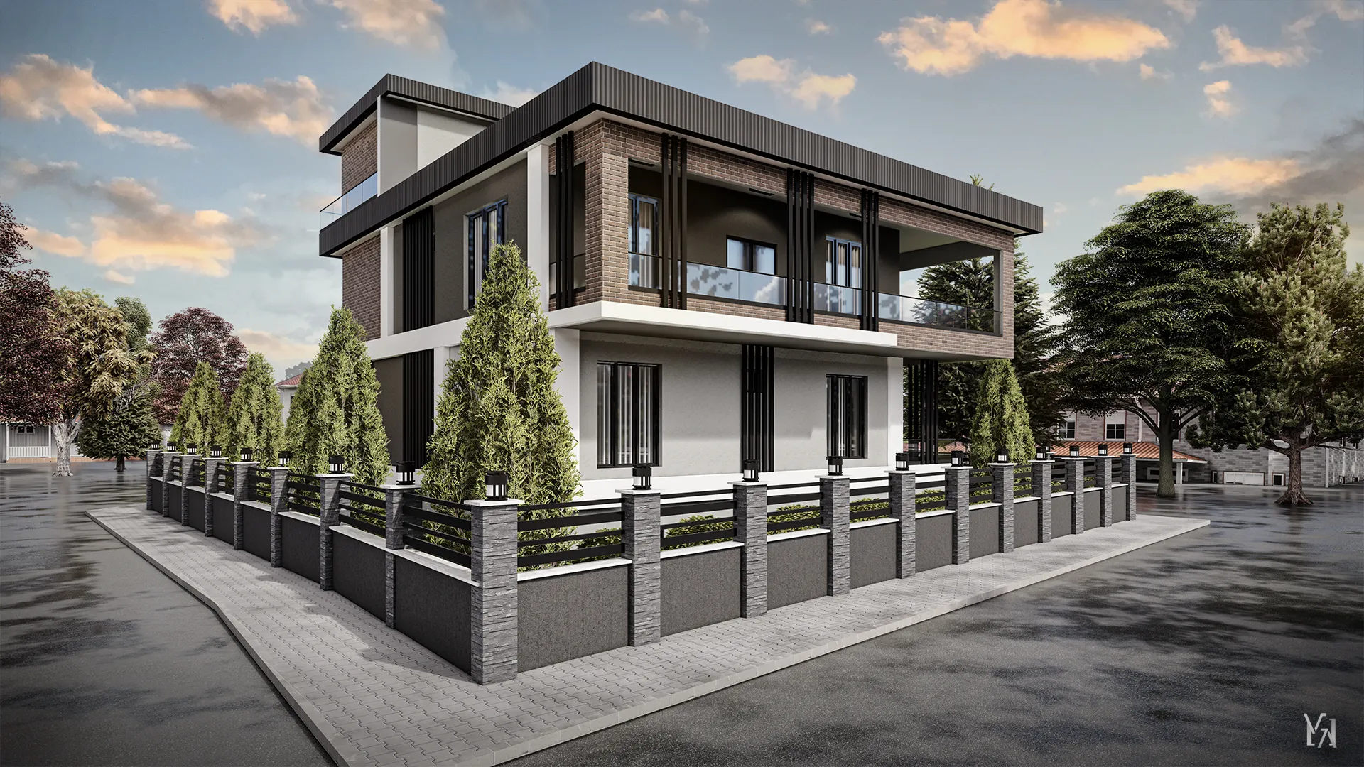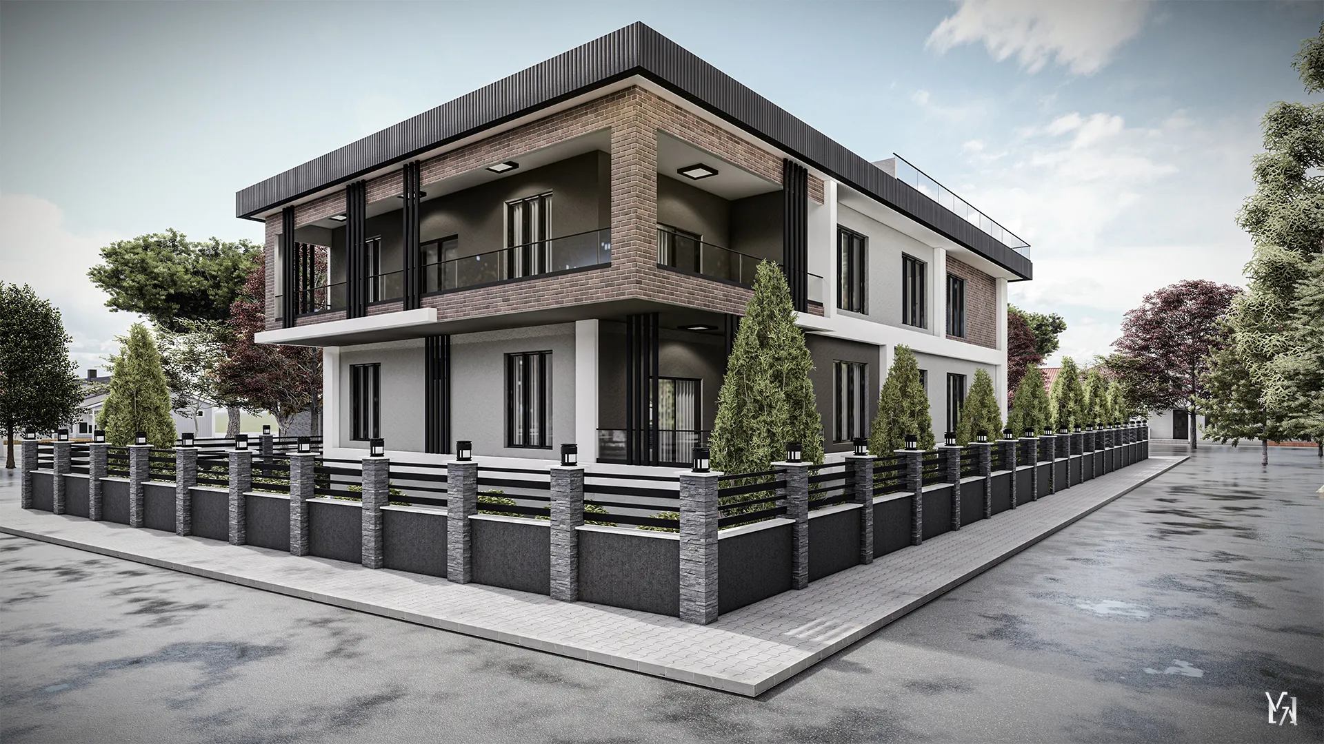 Projenin mimari konsepti, çağdaş çizgilerle sadeliği birleştirirken, yapının bulunduğu çevreyle uyumlu bir estetik dil sunmayı hedefler. Geniş pencereler ve açık teras alanları, iç mekanlarda maksimum doğal ışık kullanımı sağlarken, kullanıcıların çevreyle güçlü bir bağ kurmasına olanak tanır. Dış cephede kullanılan tuğla dokusu ve modern malzemeler, geleneksel ve modernin dengeli bir uyumunu ortaya koyar.